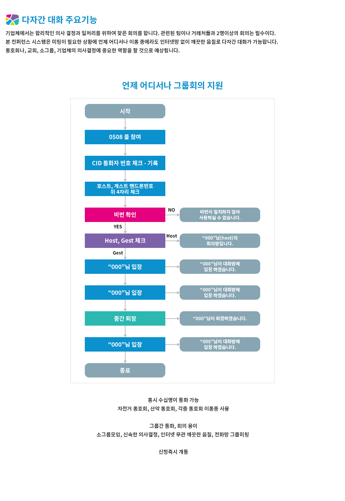 소그룹모임, 신속한 의사결정, 인터넷 무관 깨끗한 음질, 전화망 그룹미팅
